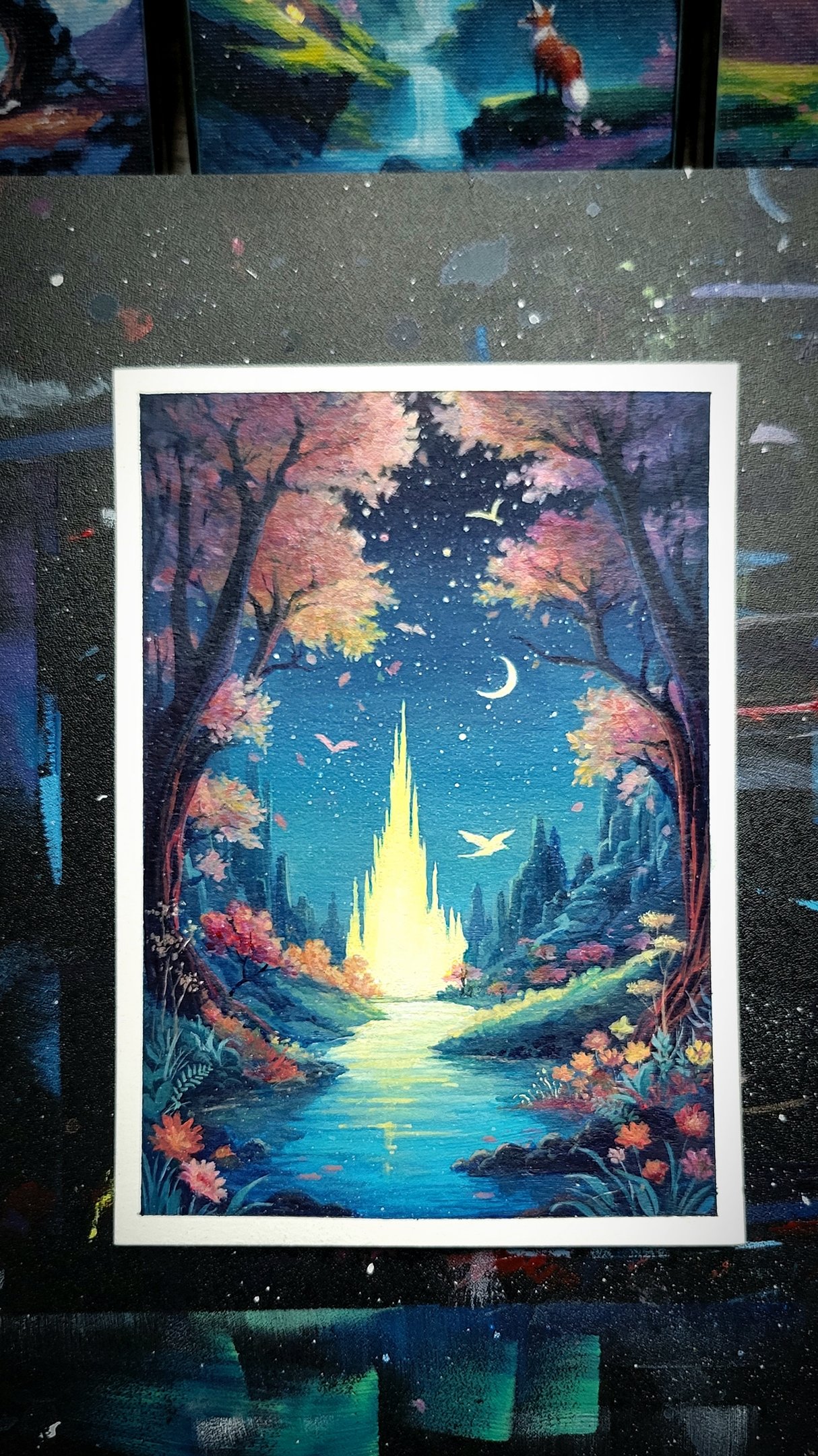 Original acrylic painting on 300 gsm (140 lb) 100 % cotton, acid-free, cold-press archival paper.