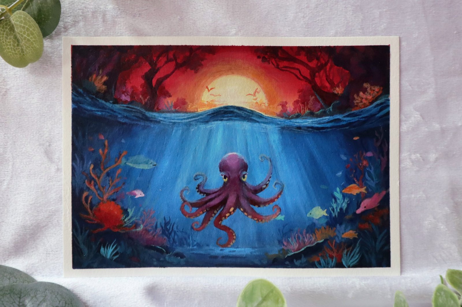 Original acrylic painting on 300 gsm (140 lb) 100 % cotton, acid-free, cold-press archival paper.