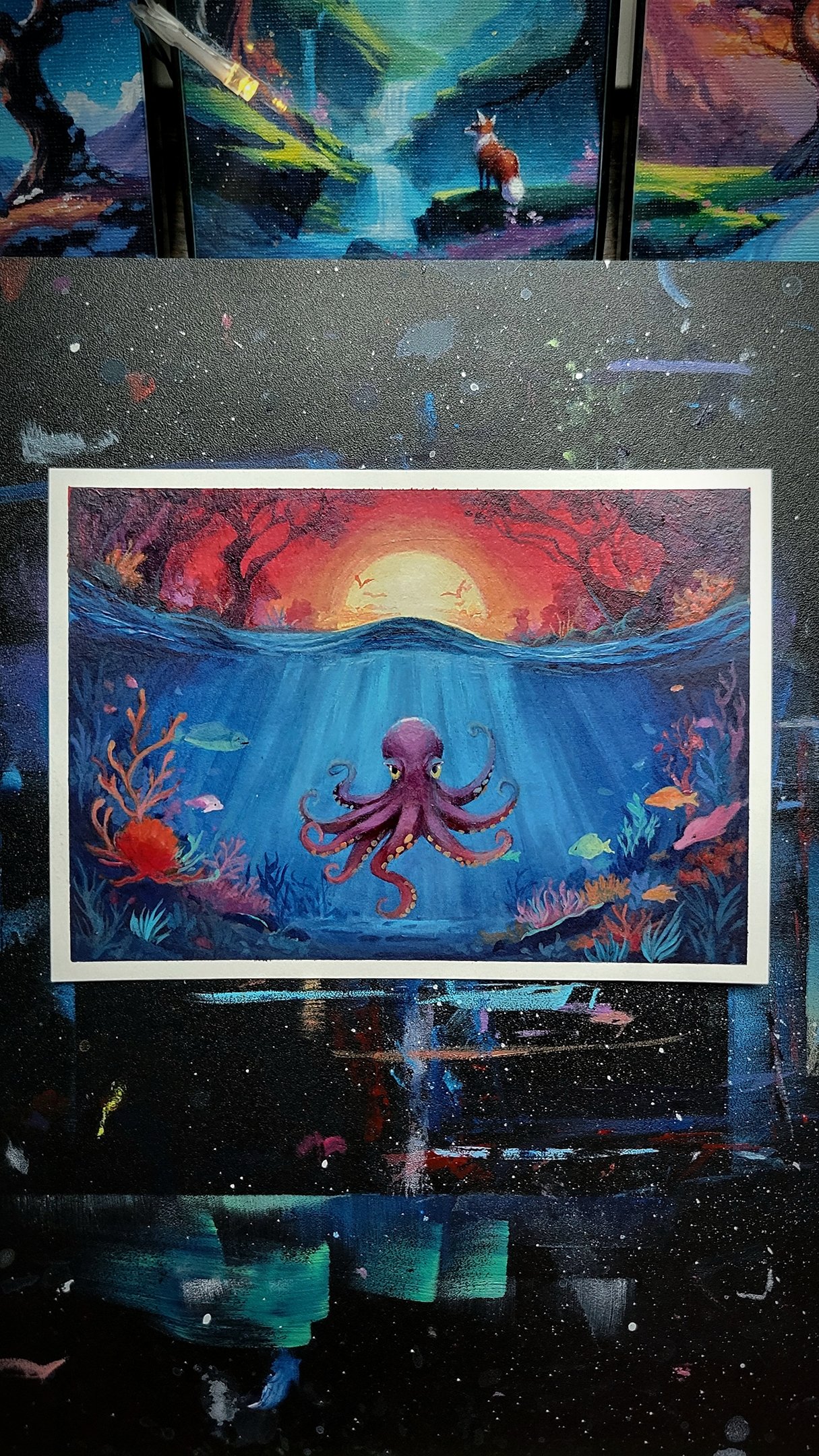 Due to variations in screen calibration and display settings, colors may appear slightly different from the original painting.